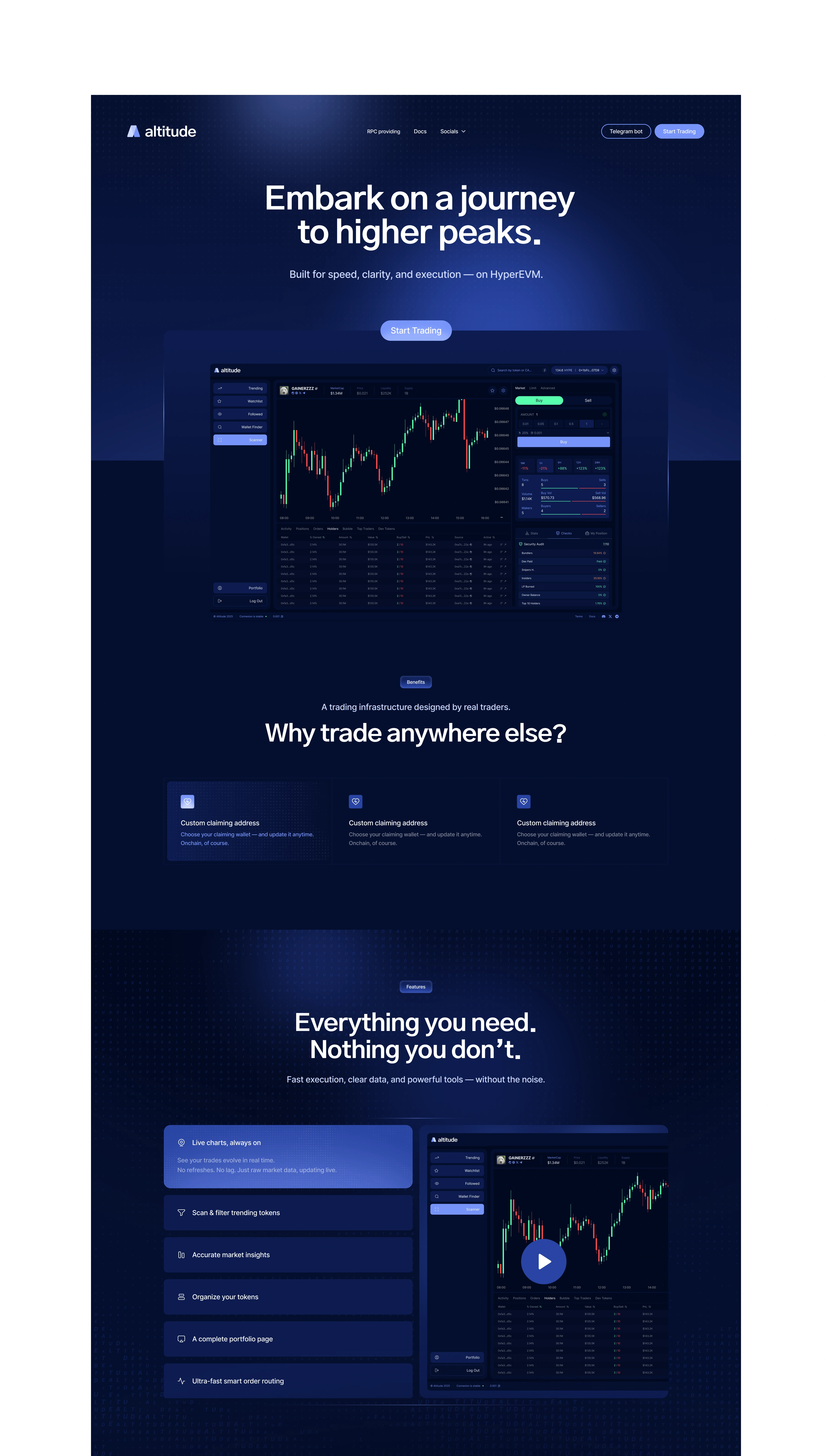 Altitude came to us at zero — no product, no brand, no deck. We partnered with the founding team from day one, shaping both their RPC infrastructure app and their on-chain trading platform built on HyperEVM. We defined the positioning, built the visual identity, and translated a technical vision into something investable. When it came time to raise, we crafted the pitch deck that put everything together.